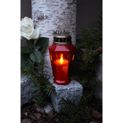 Kapų žvakė su šilta balta LED šviesa. Žvakės yra 15,5 cm aukščio, o jos degimo trukmė – 1000 valandų.