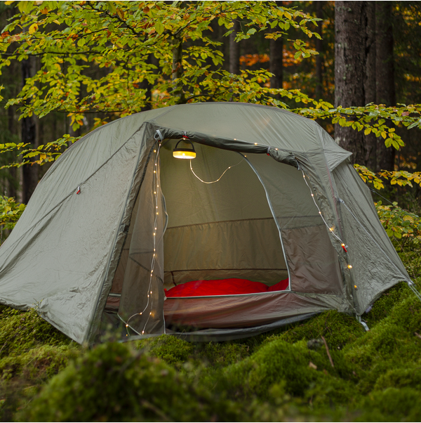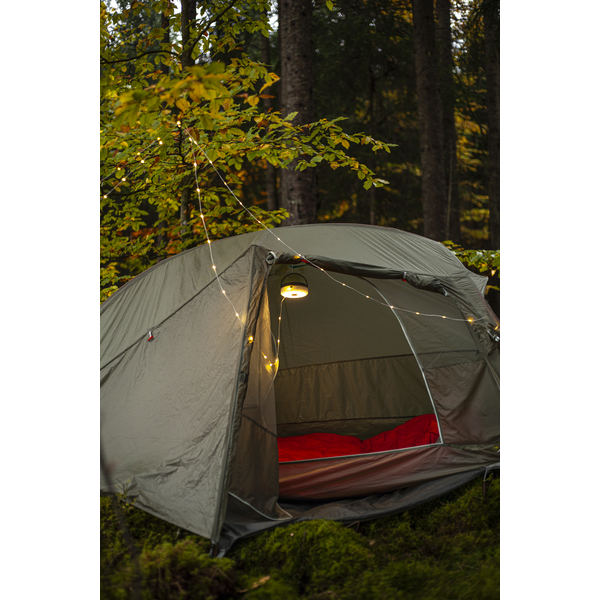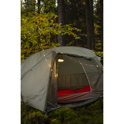 Įkraunama lempučių girlianda ritinyje – idealus sprendimas kelionėms ar gamtai.
